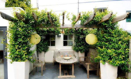 1)衣食住行是人們生活較基本的需要,其中有一句俗話是這樣說的“民以食為天”,從這就不難看出人們對食的看重,若是別墅庭院的面積夠大,可以設(shè)置一個室外餐廳,用木質(zhì)格柵做頂,在四周稍稍栽種一些葡萄,當(dāng)葡萄的藤蔓爬滿格柵時,在此處休息,聊天喝茶,也是別有一番風(fēng)味。