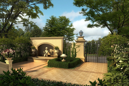歐式庭院以法國人和意大利人的設(shè)計為代表,將整個庭院的小徑、林陰道和水景分隔成許多部分,以長長的臺階變換景觀高度,使庭院在整體上達(dá)到和諧;細(xì)節(jié)上,如柱子的造型、欄桿的雕花以及草木的搭配,材質(zhì)、色彩都和本身的建筑物相呼應(yīng),莊嚴(yán)雄偉,而且蘊含著豐富的想象力。