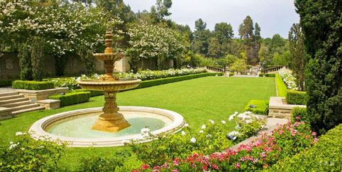 臺(tái)地、雕塑、噴泉、臺(tái)階水瀑、整形植物。特點(diǎn):多采用中軸對(duì)稱形式,開(kāi)辟一層層的臺(tái)地、噴泉、雕像等,植物選擇上突出常綠樹(shù)而少用鮮花。